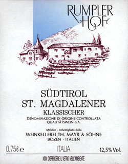 "Rumplerhof" - Südtirol St. MagdalenerDer St. Magdalener besteht zu 90% aus Vernatsch und Der Magdalener von Thomas Mayr stammt aus dem Die Lage zeichnet sich außerdem durch ein gutes Verhältnis |