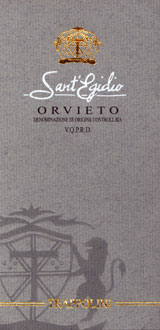 Der Wein Orvieto d.o.c. (Kontrollierte Ursprungsbezeichnung) Sant'Egidio wird aus einer sorgfältigen Mischung der Trauben "Procanico, Grechetto, Malvasia, Verdello und Drupeggio" gewonnen, die in dem gleichnamigen Gebiet, südlich der Stadt Orvieto, angebaut werden.
